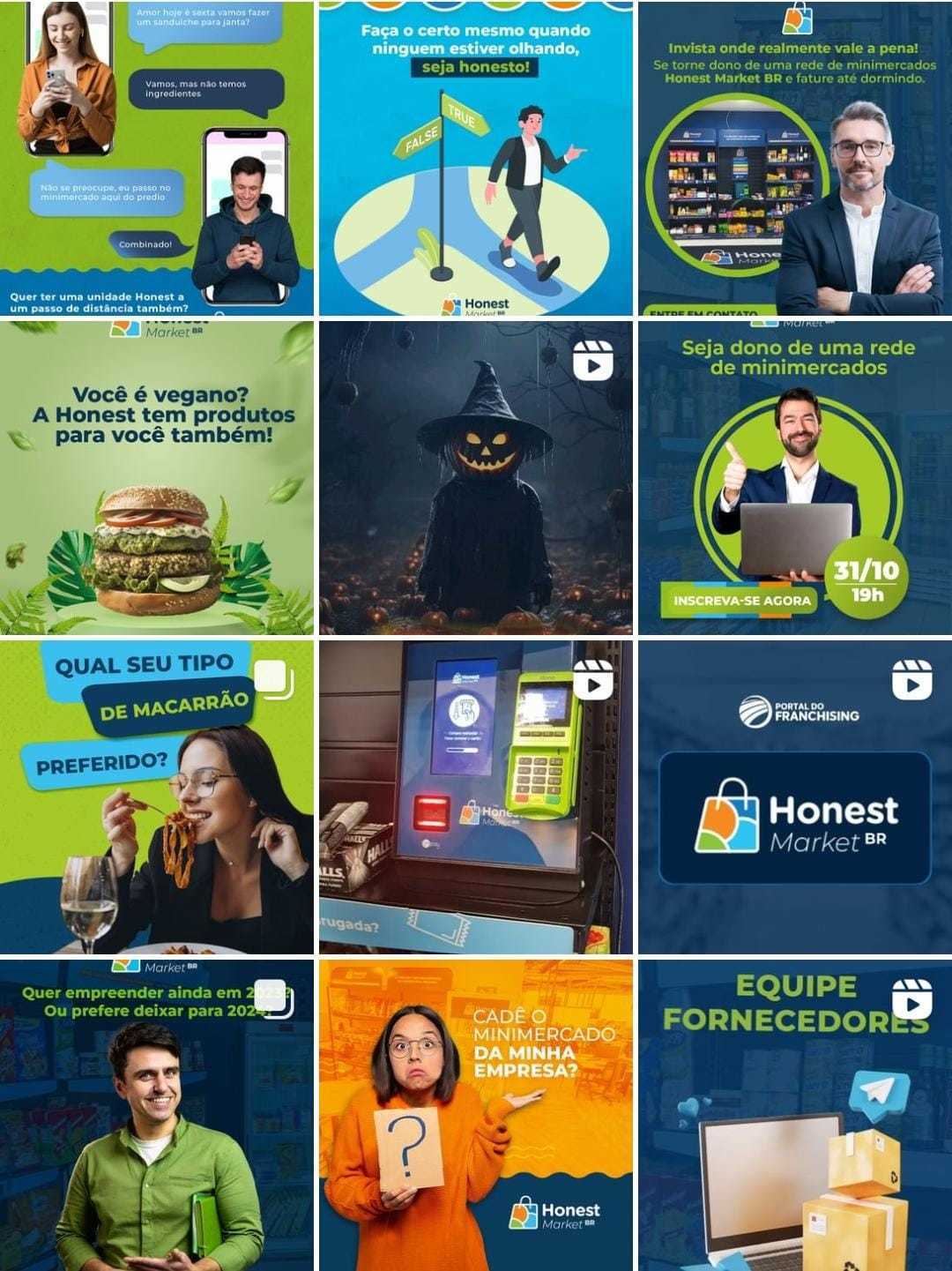 Materiais para as redes sociais, feiras e ponto de venda da Honest Market Brasil