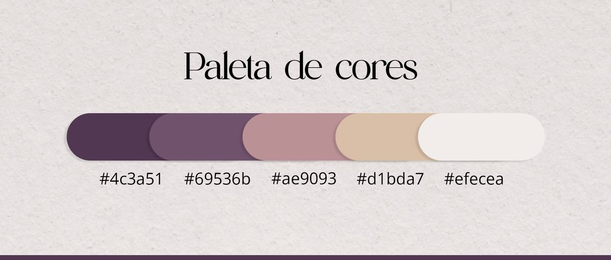 A paleta de cores é cuidadosamente selecionada para reforçar o conceito da marca. Os tons de roxo evocam a ideia de sofisticação, remetendo à realeza e nobreza, o que estabelece a marca como uma escolha premium. O tom de bege faz alusão aos próprios biscoitos amanteigados. A escolha de cores mais fechadas adiciona maturidade e elegância, tornando a marca versátil o suficiente para atender a dois mercados distintos, o corporativo e o de casamentos.