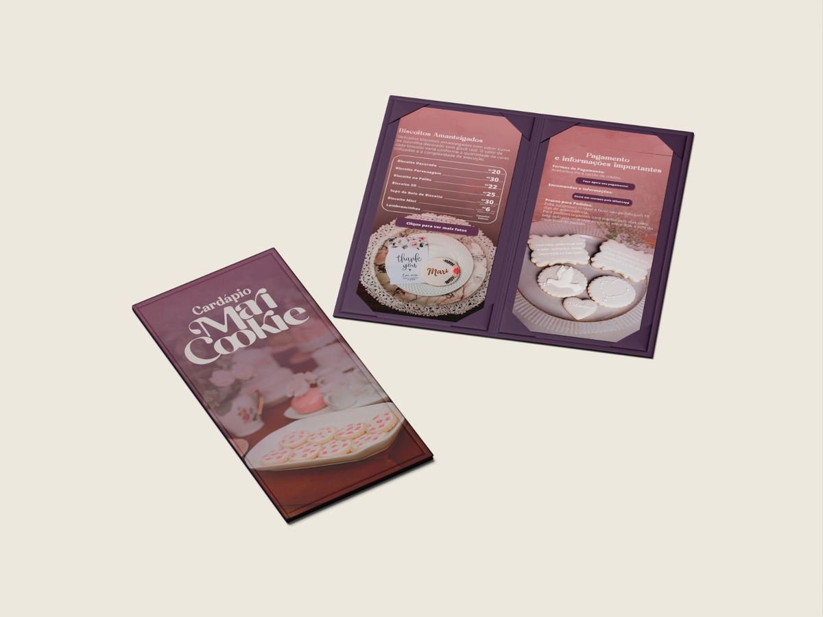 O projeto de criação da marca "Maricookie" é baseado no conceito de elegância, sofisticação, afetuosidade, modernidade e sutileza. A marca busca oferecer uma experiência de biscoitos amanteigados decorados que vai além do sabor, trazendo consigo um toque de requinte e carinho em cada detalhe.