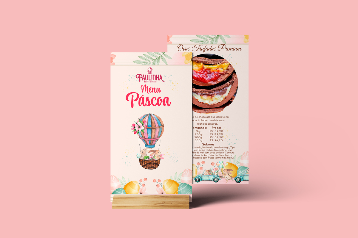 A identidade visual é uma fusão harmoniosa de elementos inspirados em confeitarias vintage, adaptados para uma estética sofisticada e moderna. A tipografia do logotipo foi cuidadosamente escolhida e modificada para refletir essa inspiração, com cantos arredondados que trazem uma sensação de aconchego e acolhimento. O "i" de Paulinha foi modificado para remeter a espátula utilizada na confeitaria.