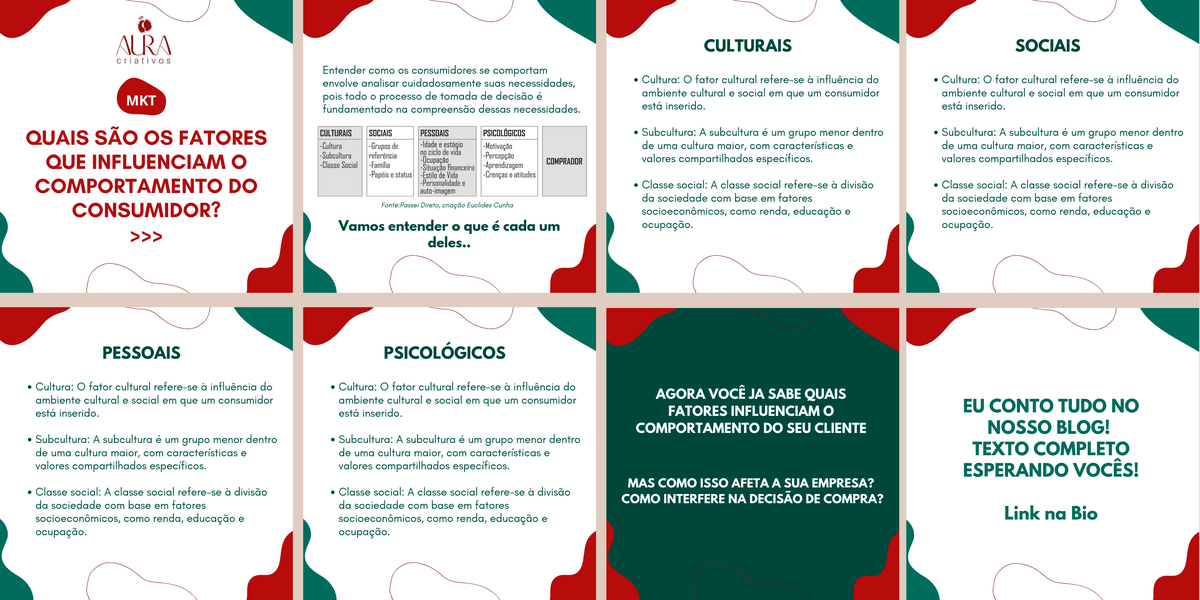 Criação de arte e copy para redes sociais em posts carrossel.